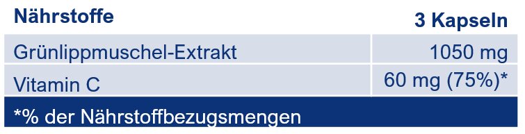 mit dem 100% natürlichen Grünlippmuschel-Extrakt aus Neuseeland (Original Perna Extract), ergänzt mit Vitamin C.